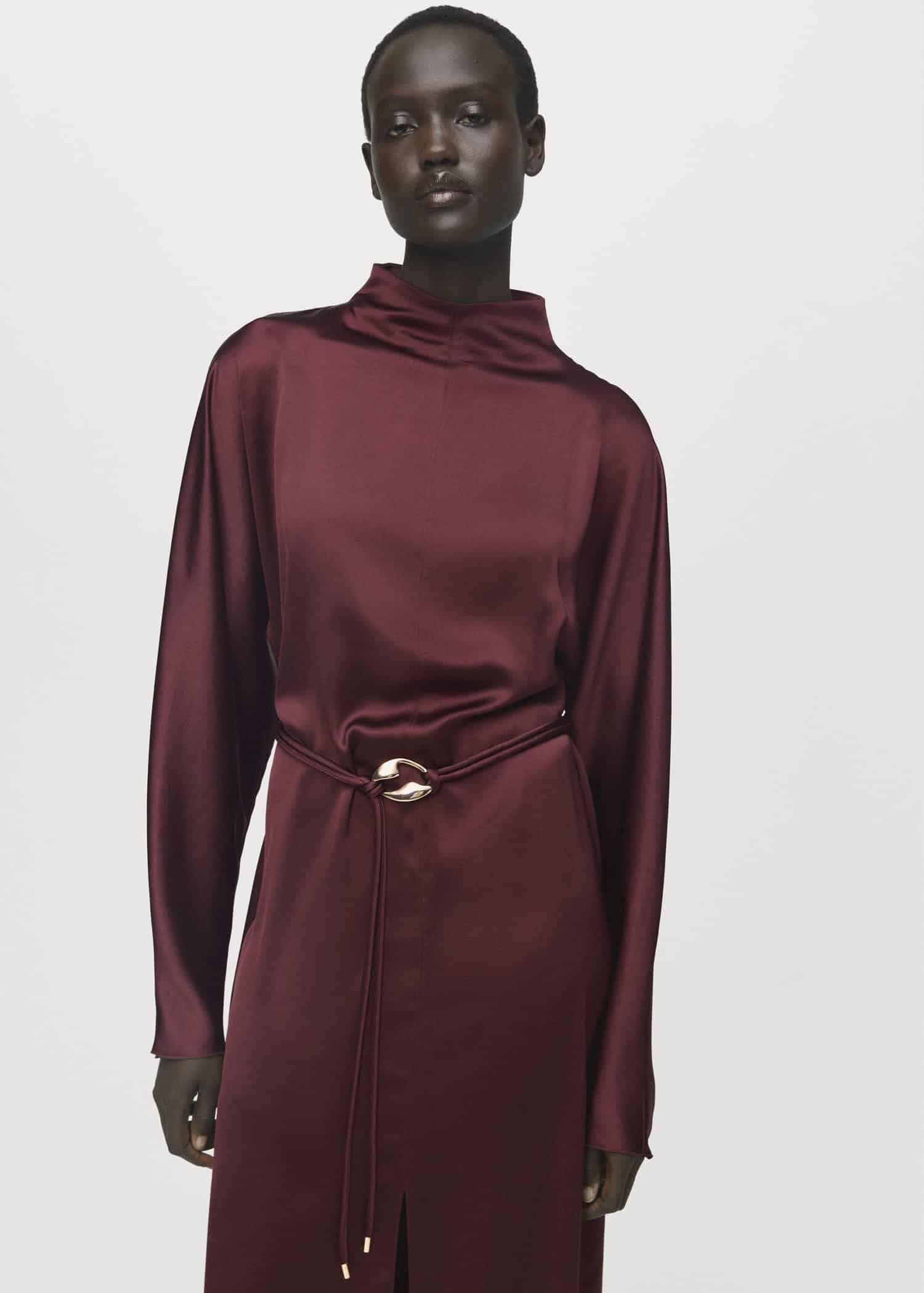 Satinstof, Midi-Design, Lige Design, Høj hals, Lange ærmer, Justerbart bælte, Åbning nederst, Lynlåslukning bagpå. INGEN OVERSÆTTELSE 150,0. INGEN OVERSÆTTELSE 136,4