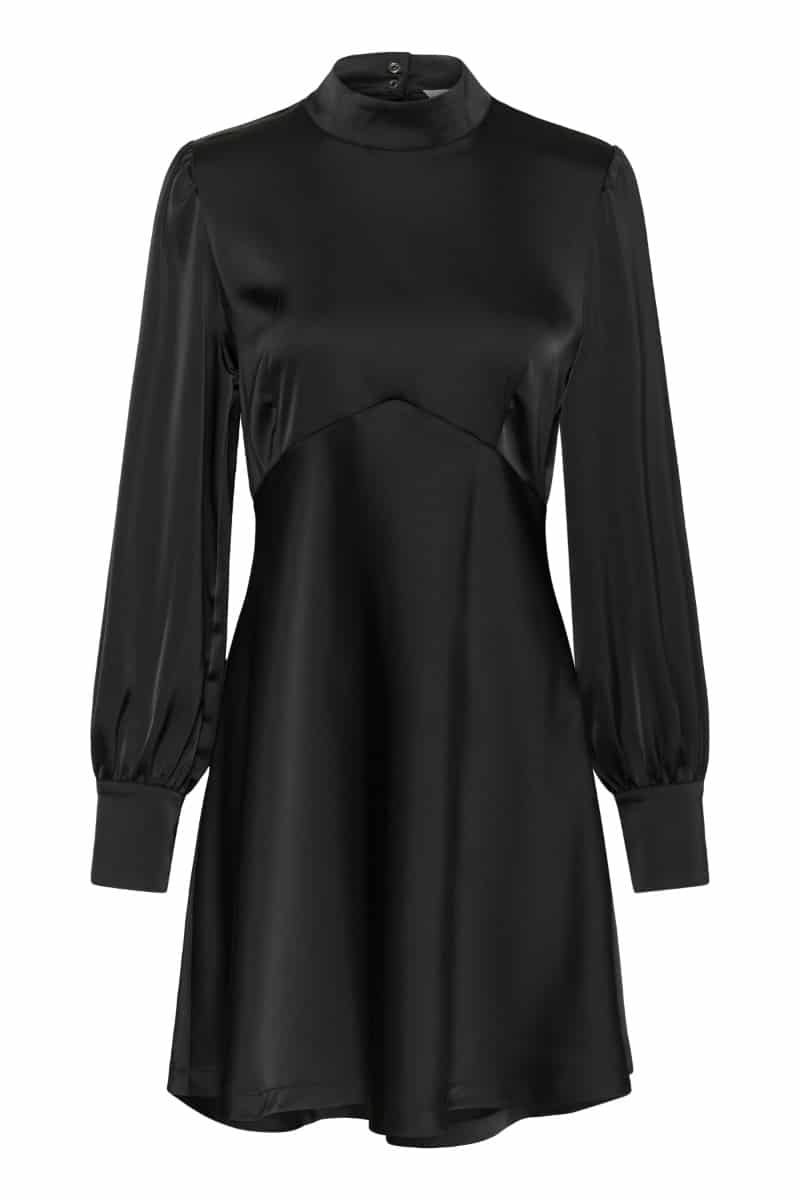 En smuk kjole i denne satin kvalitet fra Gestuz er kommet i en klassiske sort farve som man aldrig går galt i byen med. Den er med A snit og derfor passer den også de fleste kropstyper. Derudover er den med en dyb ryg og smuk til en julefrokost eller nytå