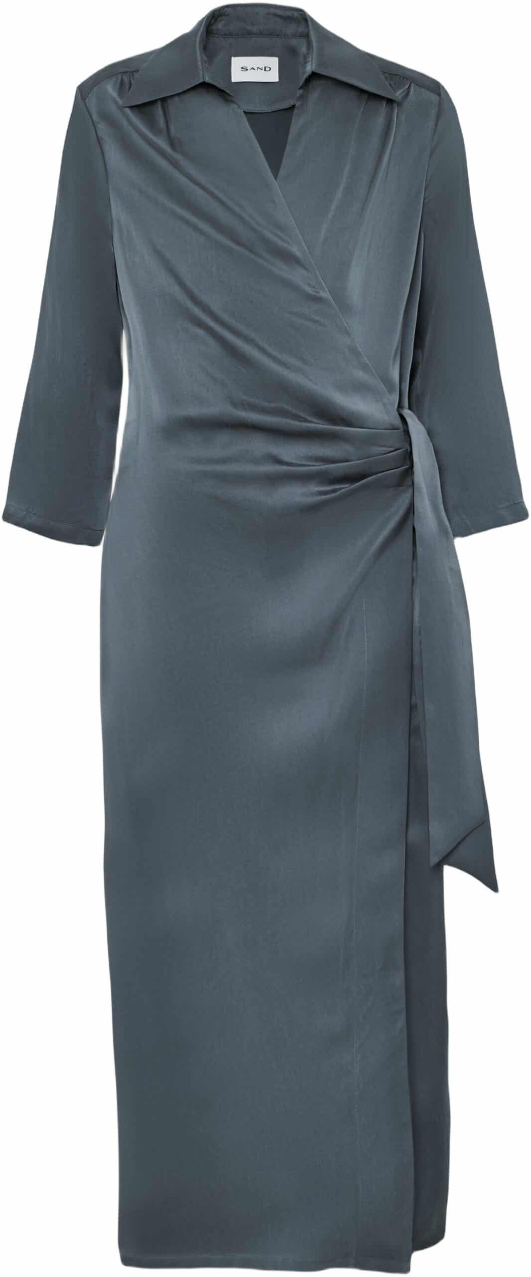 Cache-coeur bluse med rynkedetaljer og bånd foran. Åben spids skjortekrave og 3/4-ærmer med slids. Normal pasform. Fremstillet i sandvasket satin af silkeblanding. Composition: 58% Silke, 42% Viskose.