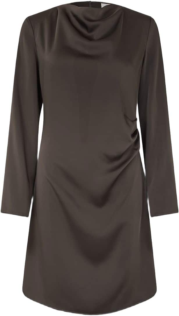 Kort kjole i en smuk satin med flatterende rynkedetalje i siden og halsudskæring med let vandfald. TailorMD dress har lange ærmer og usynlig lynlås i ryggen.